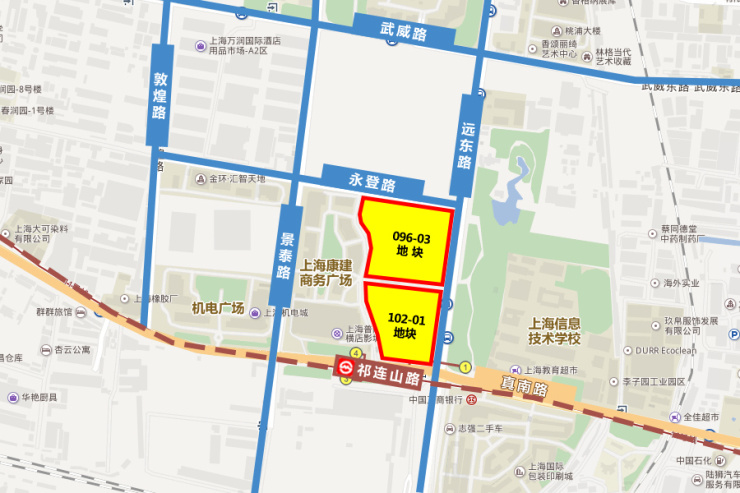 地块东至祁连山路,西至方渠路,南至真南路,北至永登路,土地用途为商办。总用地面积3.31万平方米,容积率2.85,规划总建面积9.45万平方米,绿化率20%。